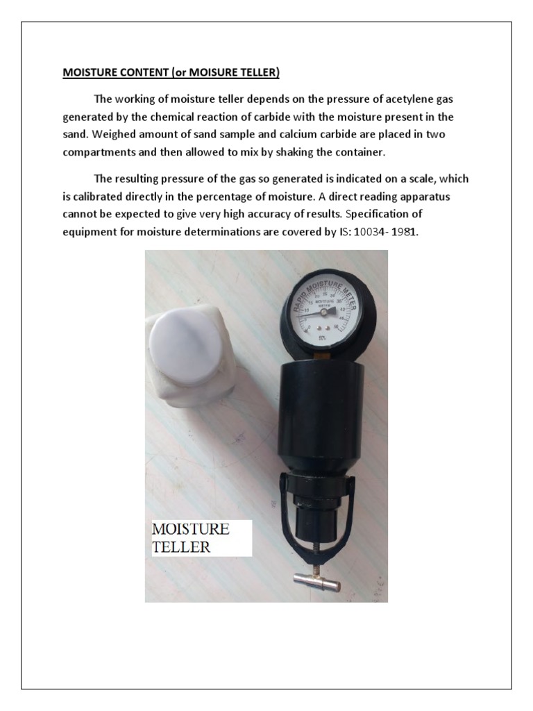 equipment for moisture determinations are covered by IS: 10034- 1981.