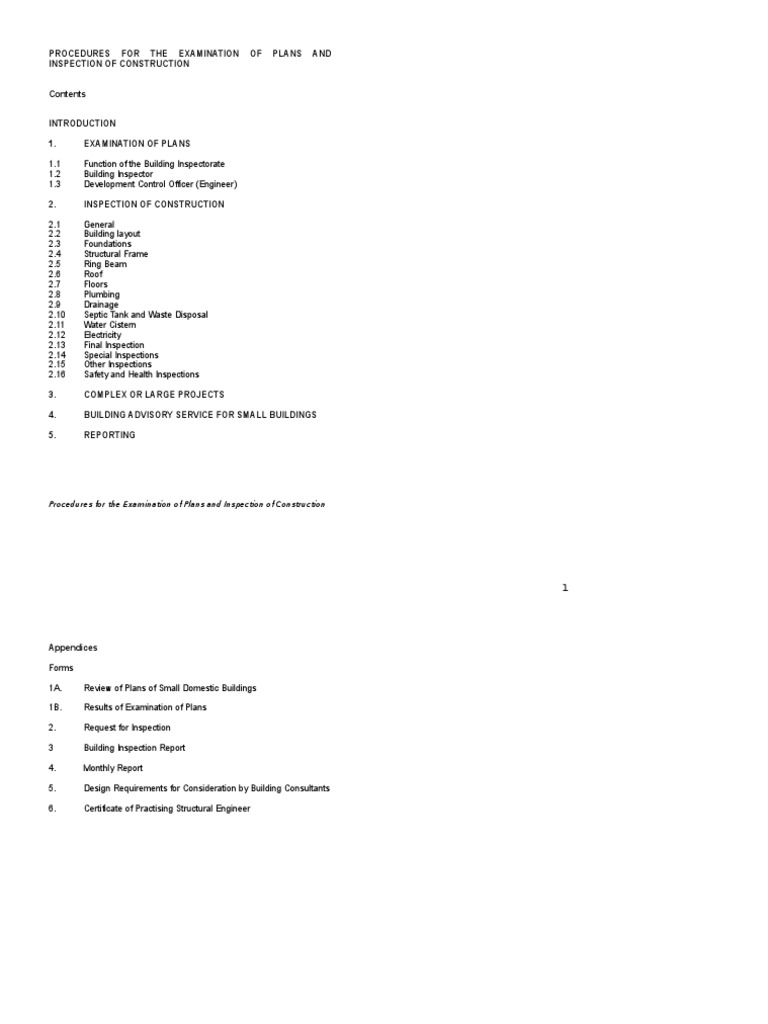 Procedures for the Examination of Plans and Inspection of Construction