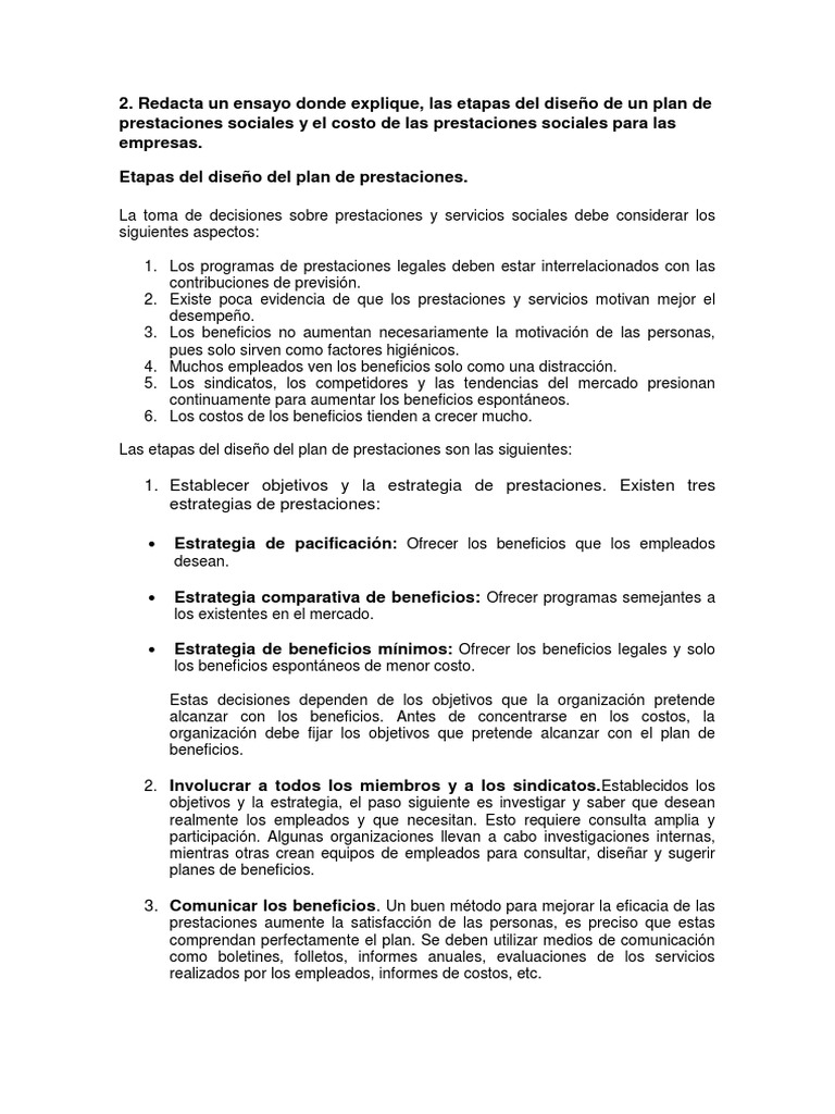 Las etapas del diseño del plan de prestaciones son las siguientes:
