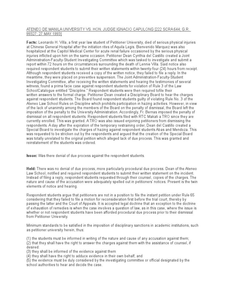 ATENEO DE MANILA UNIVERSITY VS. HON. JUDGE IGNACIO CAPULONG [222 SCRA 644; G.R.
