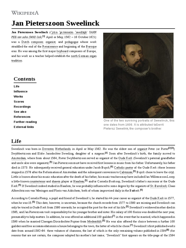 measured.[5] Sweelinck was known in Germany as the "maker of organists".