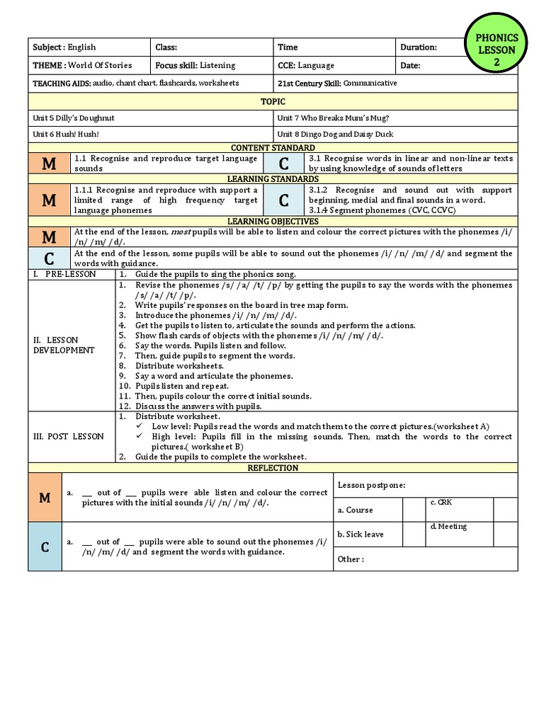 At the end of the lesson, most pupils will be able to listen and colour the correct pictures with the phonemes /i/