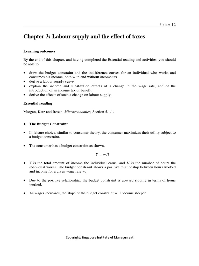 Chapter 3: Labour supply and the effect of taxes