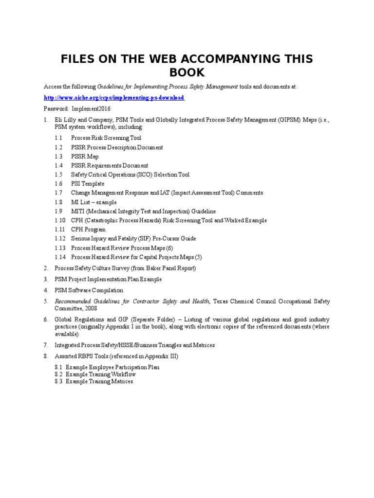 practices (originally Appendix I in the book), along with electronic copies of the referenced documents (where