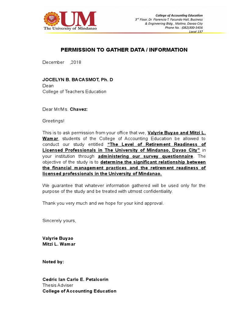 This is to ask permission from your office that we, Valyrie Buyao and Mitzi L.