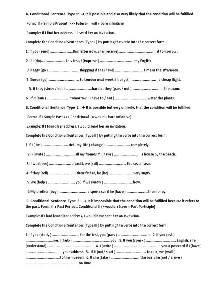 (understand) ……………………… ………………… . 4. I (write ) …………………………………………....you a postcard if I (have )