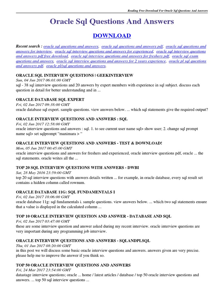 and answers pdf free download, oracle sql interview questions and answers for freshers pdf, oracle sql exam