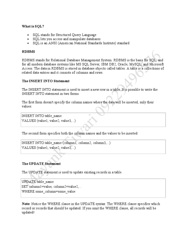 Note: Notice the WHERE clause in the UPDATE syntax. The WHERE clause specifies which