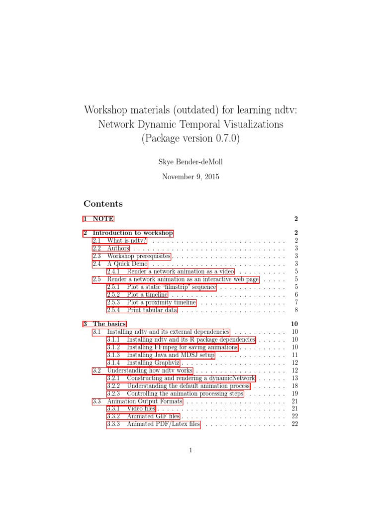 3.1.1 Installing ndtv and its R package dependencies . . . . . . 10