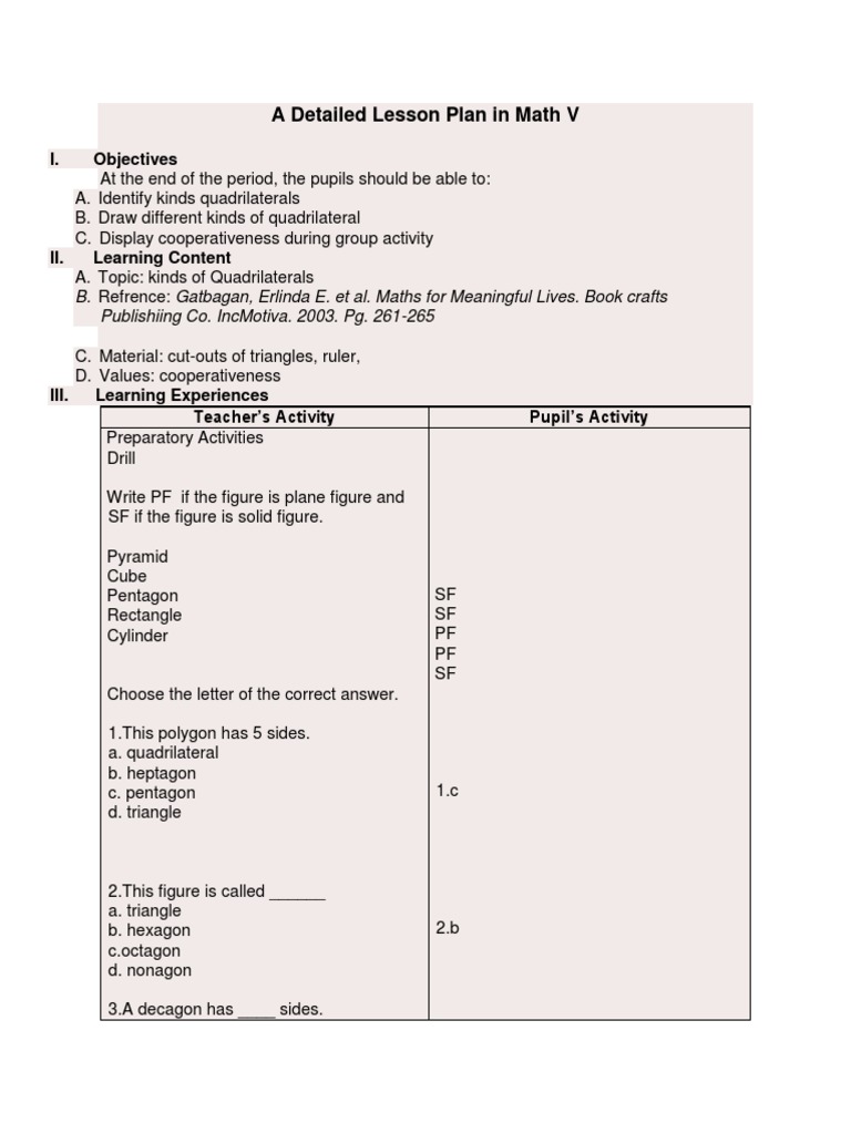 A Detailed Lesson Plan in Math V
