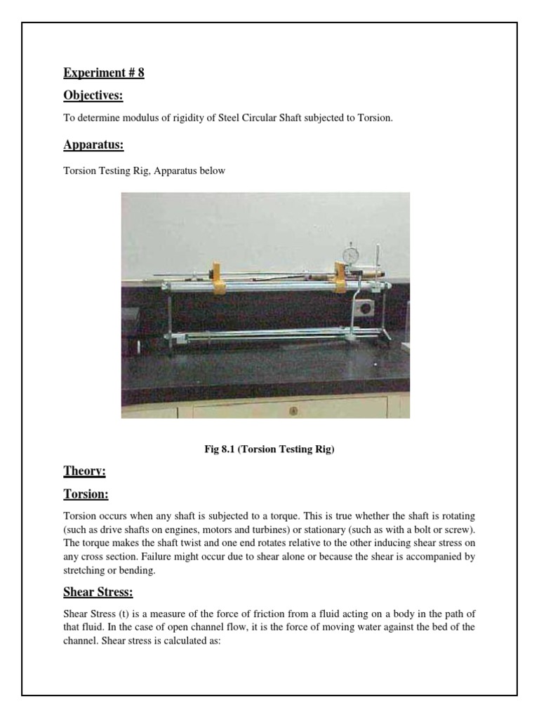 To determine modulus of rigidity of Steel Circular Shaft subjected to Torsion.
