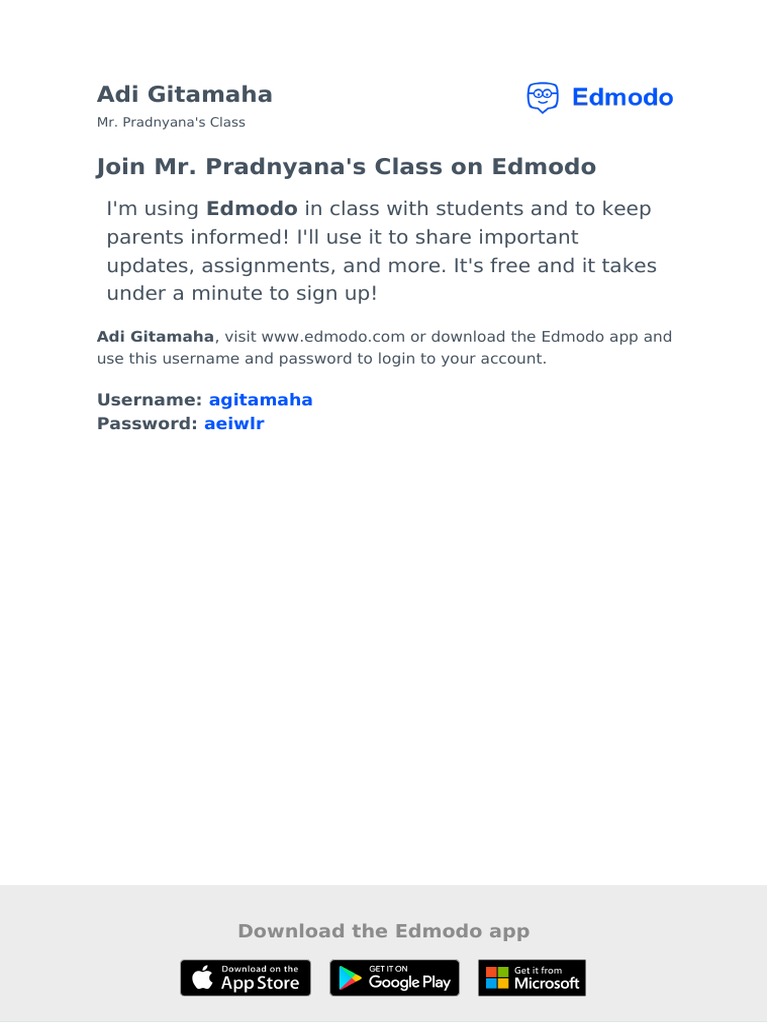 Adi Gitamaha, visit www.edmodo.com or download the Edmodo app and
