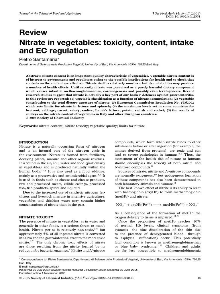 European Commission, Brussels, pp 23–32 (1992). 50 Santamaria P, Elia A, Serio F and Todaro E, A survey of nitrate