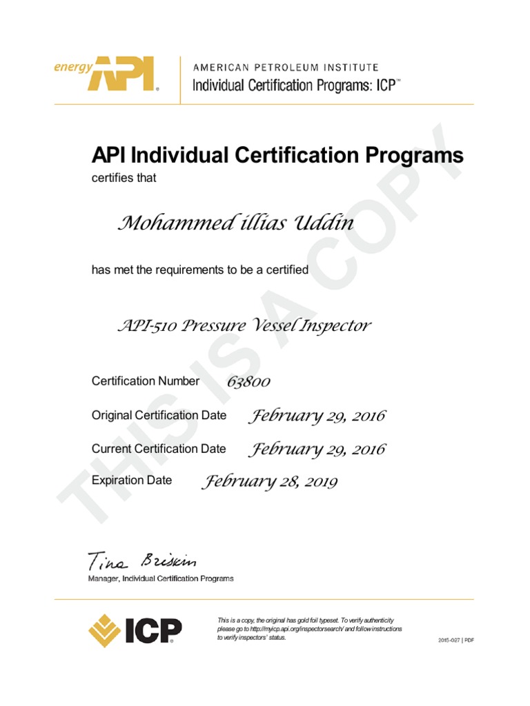 API Individual Certification Programs