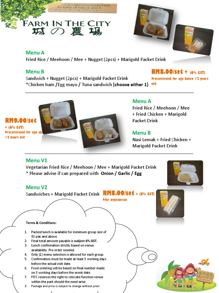 1. Packed lunch is available for minimum group size of