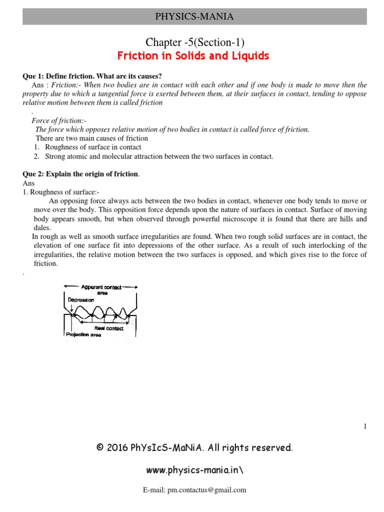 move over the body. This opposition force depends upon the nature of surfaces in contact. Surface of moving