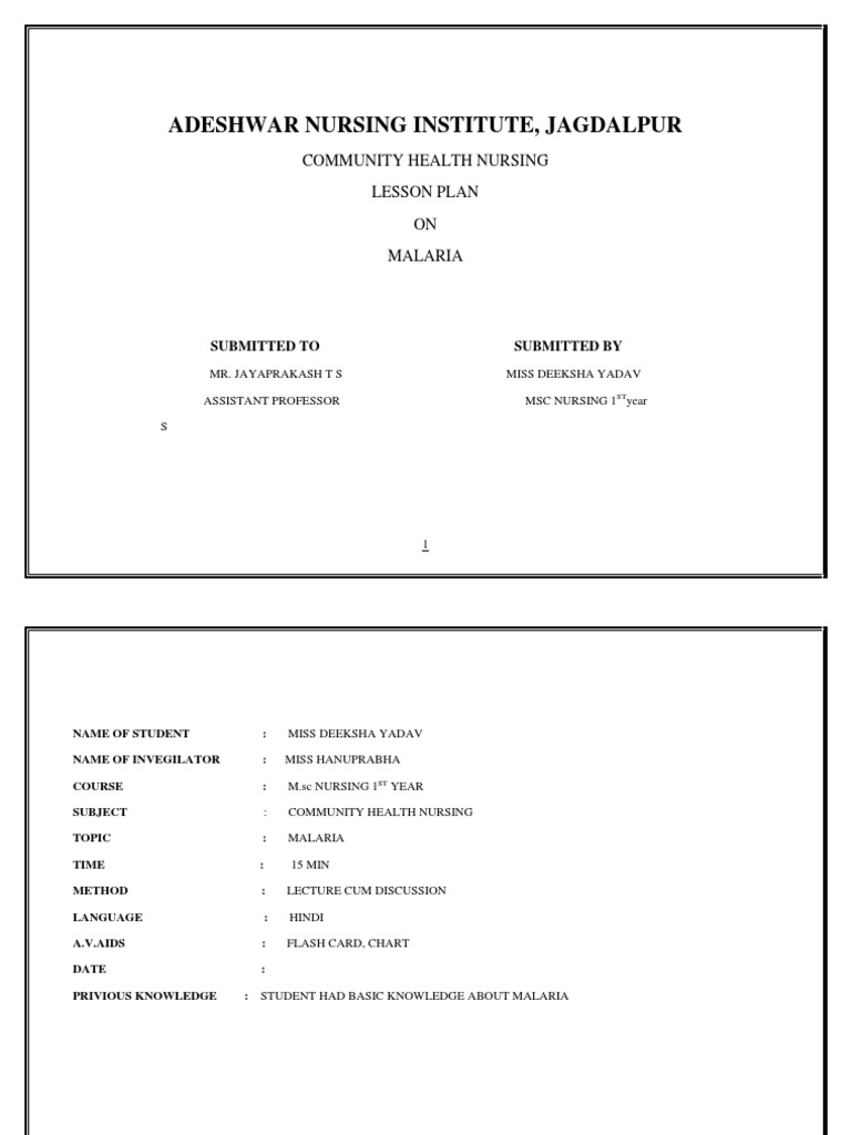 GENERAL OBJECTIVE: - At the end of the seminar, the student will gain in-depth knowledge regarding malaria and develop positive