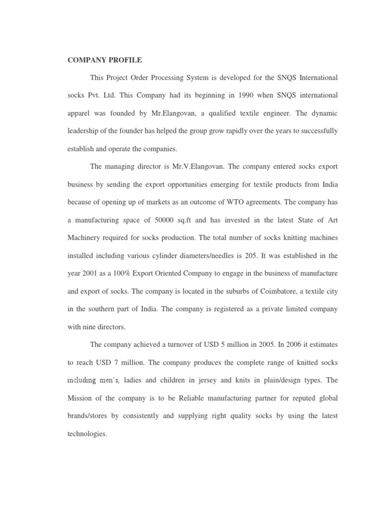 socks Pvt. Ltd. This Company had its beginning in 1990 when SNQS international