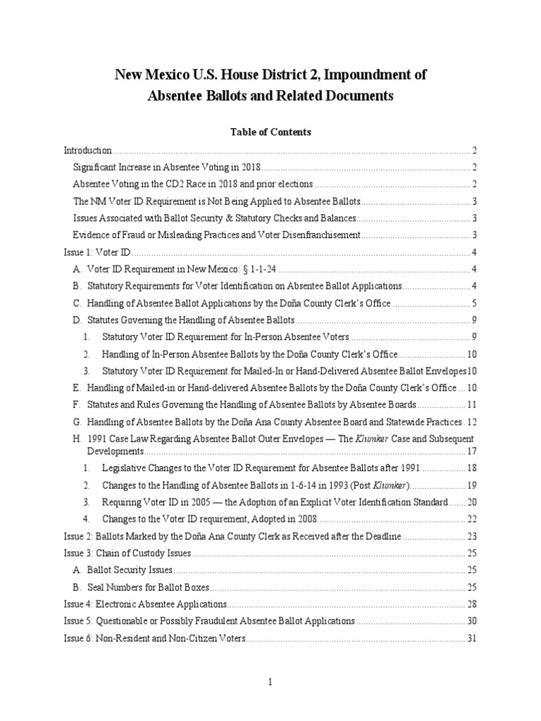 Full report prepared for Herrell for Congress regarding the review of the absentee ballot process in Dona Ana County, New Mexico during the 2018 General Election