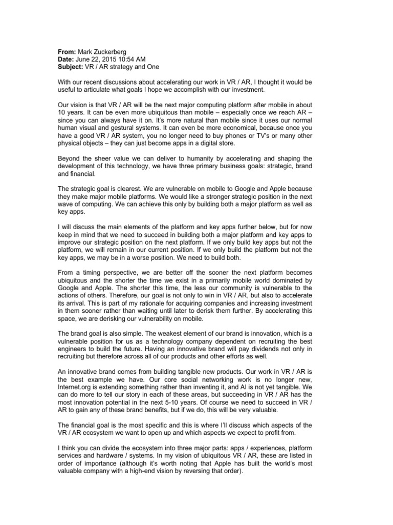 With our recent discussions about accelerating our work in VR / AR, I thought it would be