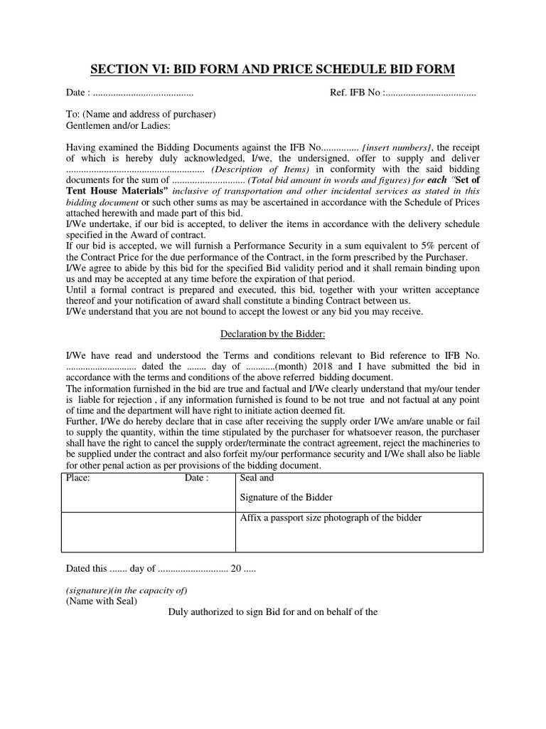 SECTION VI: BID FORM AND PRICE SCHEDULE BID FORM