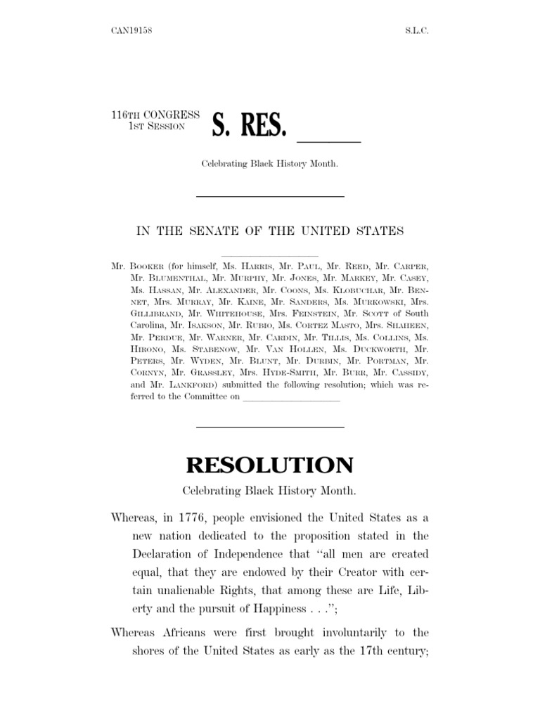 Celebrating Black History Month. Whereas, in 1776, people envisioned the United States as a new nation dedicated to the proposition stated in the Declaration of Independence that ‘‘all men are created equal, that they are endowed by their Creator with cer-tain unalienable Rights, that among these are Life, Lib-erty and the pursuit of Happiness . . .’’; Whereas Africans were first brought involuntarily to the shores of the United States as early as the 17th century;