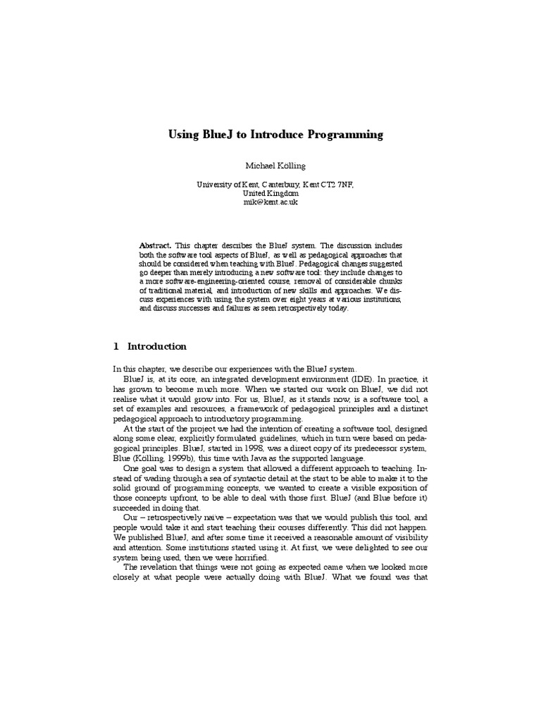 [19] Kölling, M., Quig, B., Patterson, A., Rosenberg, J. (2003) The BlueJ system and its peda-