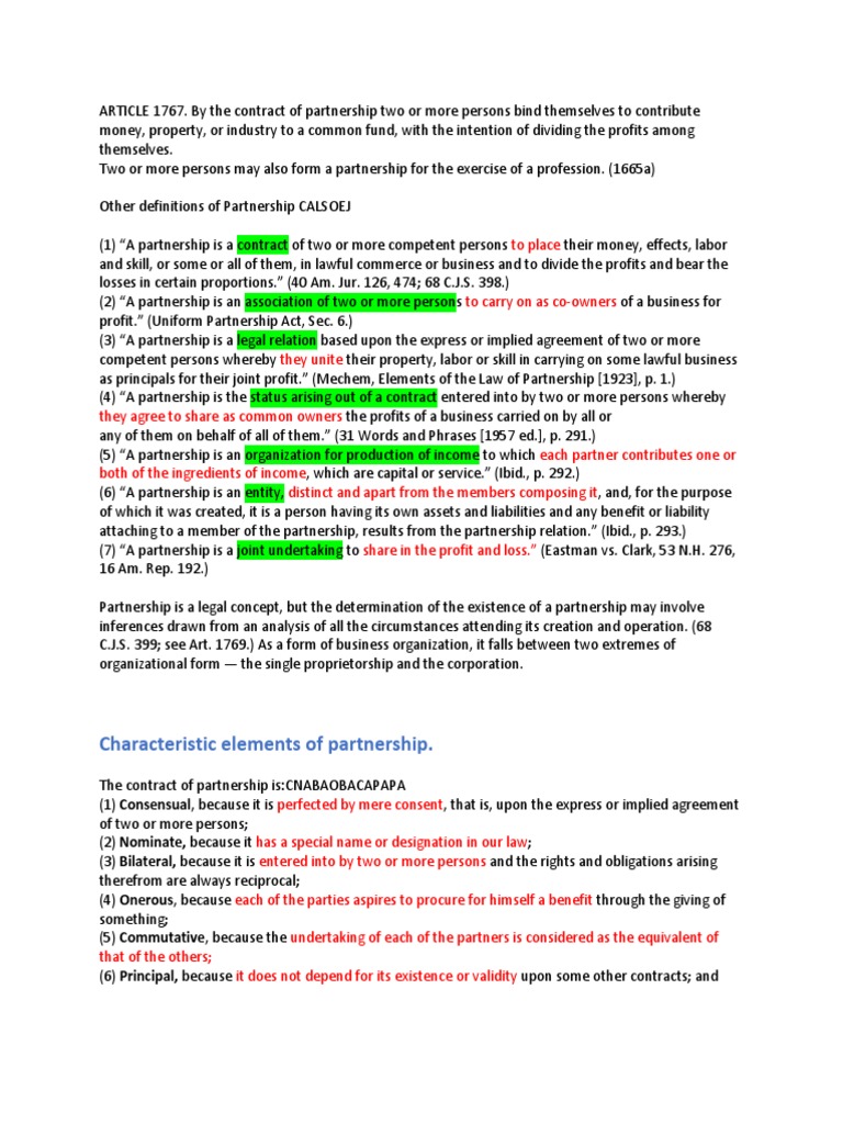 incidentally, moral, social, or spiritual ends. (see 11 Manresa 264.) In a partnership, the parties