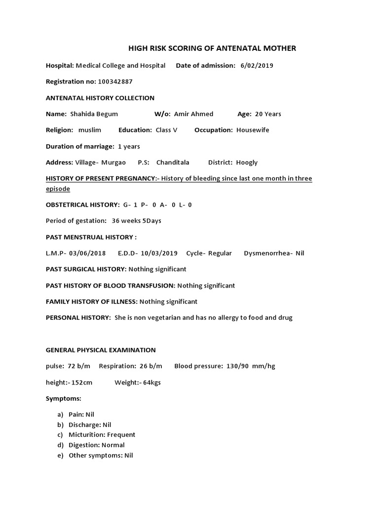 HIGH RISK SCORING OF ANTENATAL MOTHER