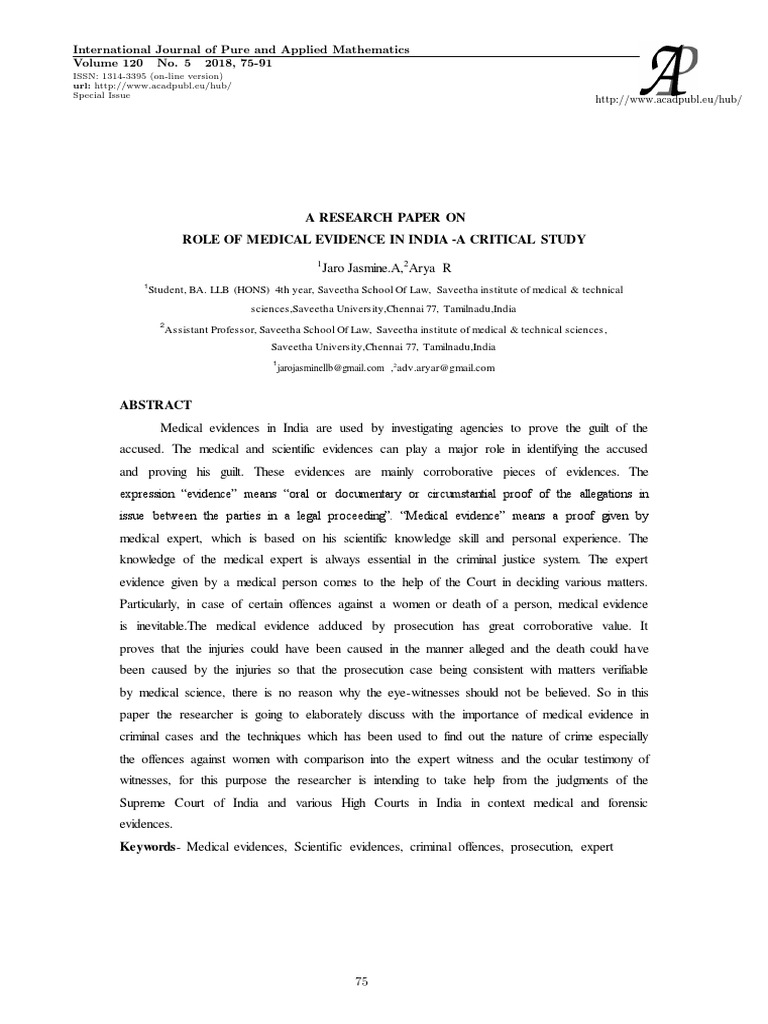 ROLE OF MEDICAL EVIDENCE IN INDIA -A CRITICAL STUDY