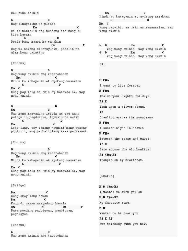 Hindi ko kakayanin at ayokong masaktan E F#m