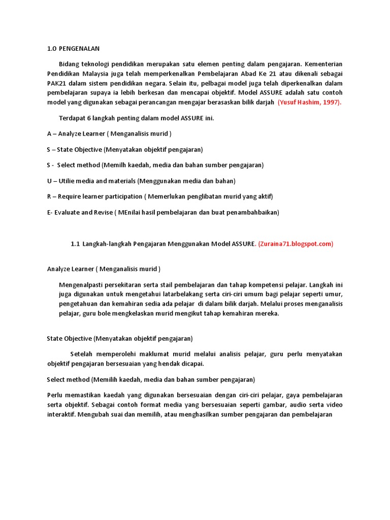 pembelajaran supaya ia lebih berkesan dan mencapai objektif. Model ASSURE adalah satu contoh
