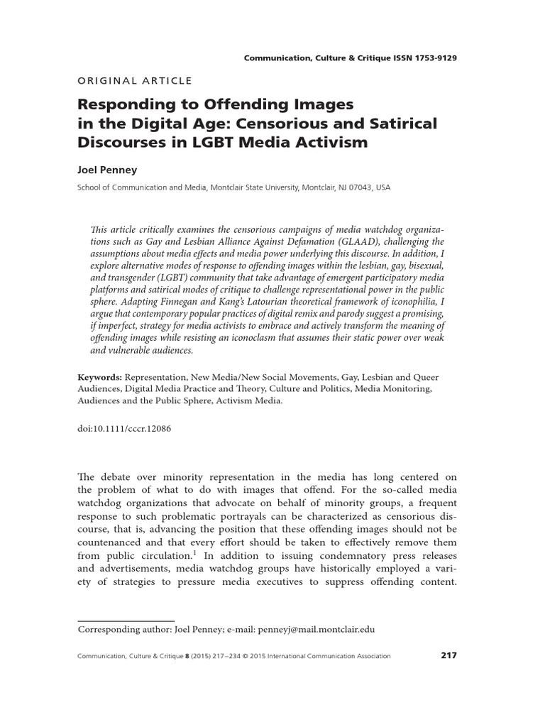 Communication, Culture & Critique 8 (2015) 217–234 © 2015 International Communication Association 217