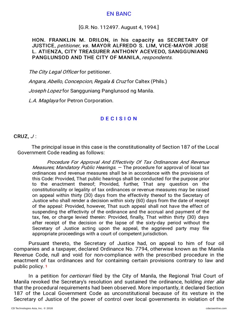 discretion on this matter. In fact, Secretary Drilon set aside the Manila Revenue Code only