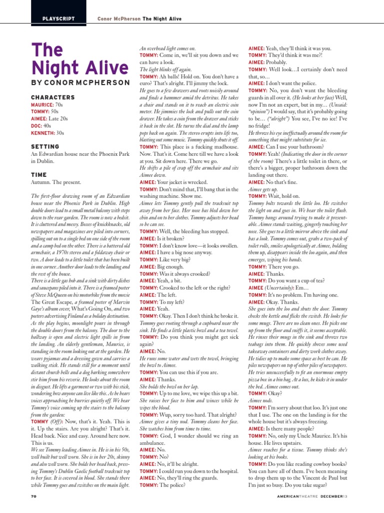 TOMMY: It’s not up to her. He goes to the camp bed and takes a piece of note- Doc leaves. Tommy reappears and starts to get