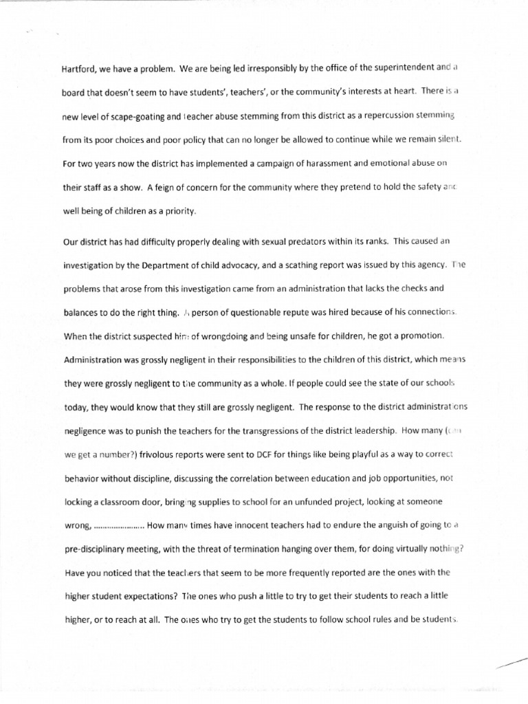 HARTFORD SCHOOLS PROBLEM MEMO