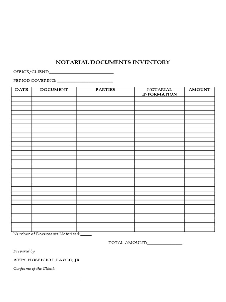 NOTARIAL DOCUMENTS INVENTORY