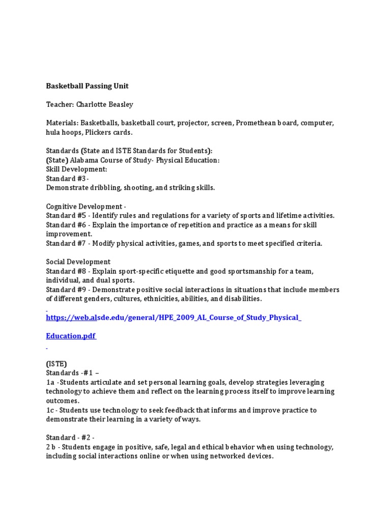 The student will use the correct skill patterns when learning to pass a basketball. The student will