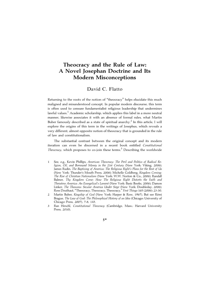 theocracy and its ultimate justification, which revolves around the rule of law.