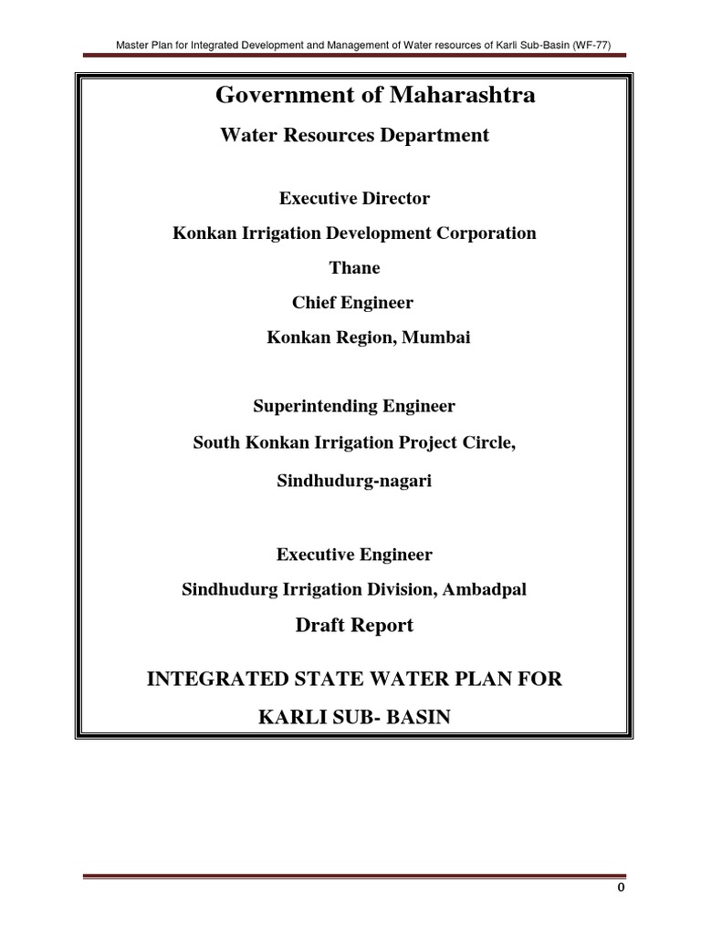 Master Plan for Integrated Development and Management of Water resources of Karli Sub-Basin (WF-77)