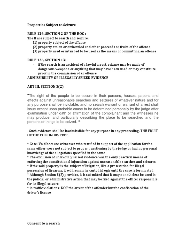 The ff are subject to search and seizure: