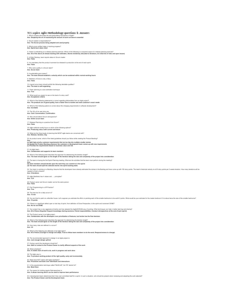 TCS aspire Agile Methodology questions & Answers