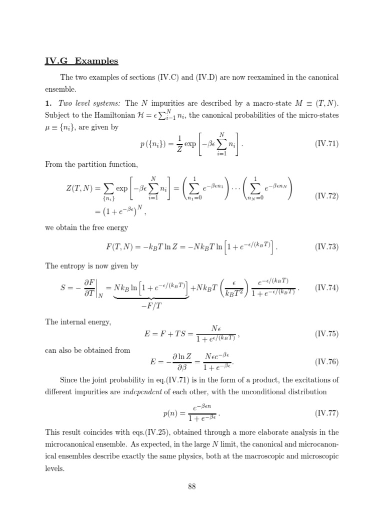 F (T, N ) = −kB T ln Z = −N kB T ln 1 + e−ǫ/(kB T ) . (IV.73)