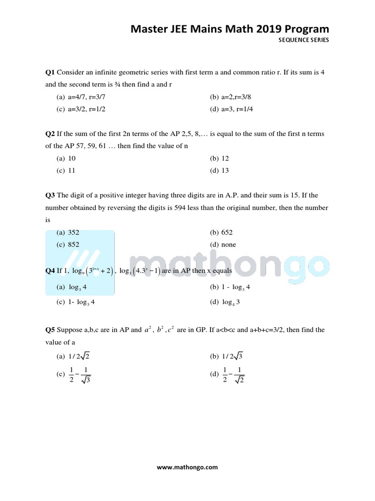 Q3 The digit of a positive integer having three digits are in A.P. and their sum is 15. If the