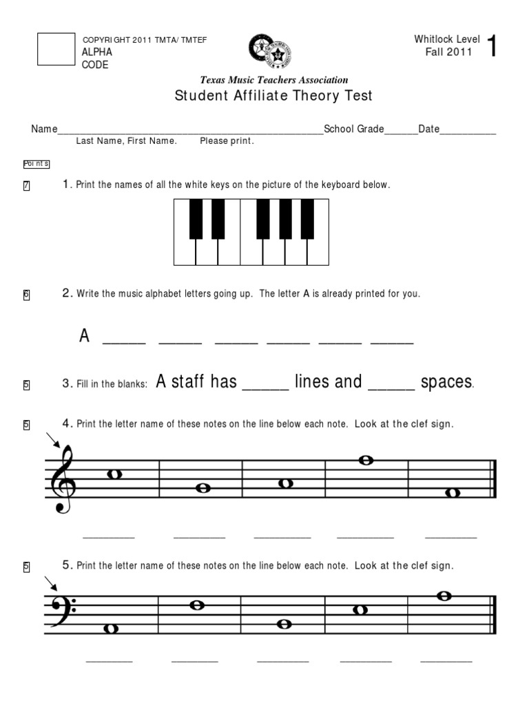 COPYRIGHT 2011 TMTA/TMTEF Whitlock Level 1 Fall 2011