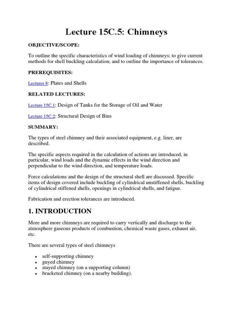 This lecture covers only self-supporting chimneys. The principles of calculation