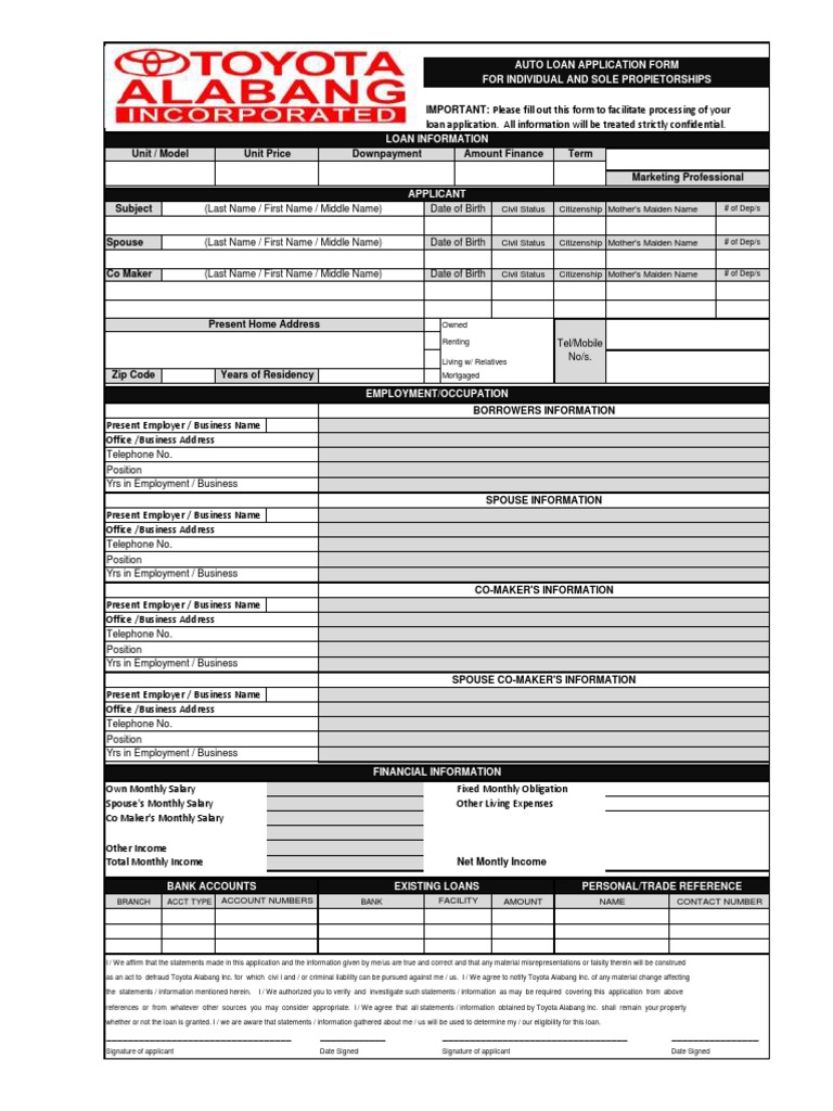 references or from whatever other sources you may consider appropriate. I / We agree that all statements / information obtained by Toyota Alabang Inc. shall remain your property
