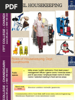 A housekeeper is a hotel worker who cleans and stocks guest rooms and public