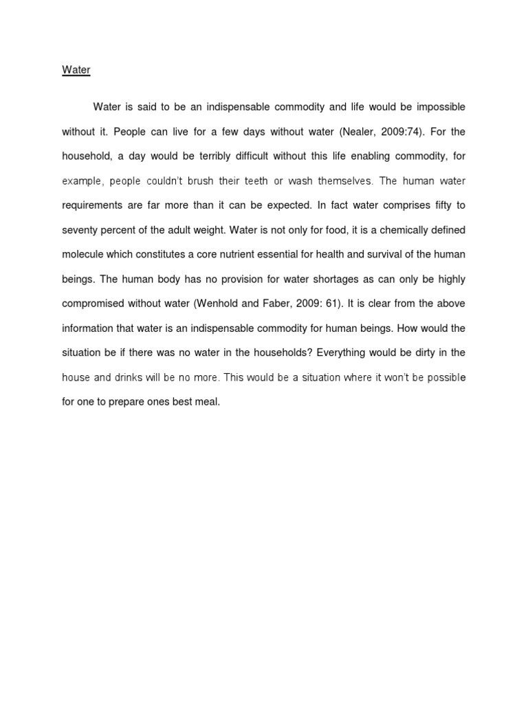 without it. People can live for a few days without water (Nealer, 2009:74). For the