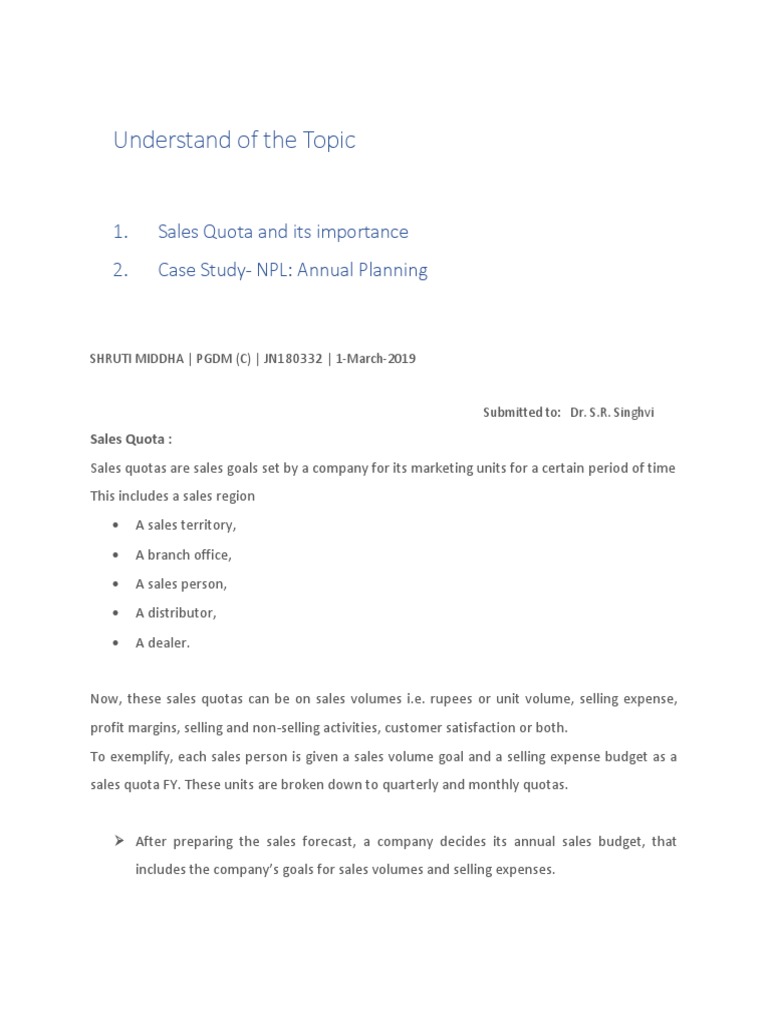 Now, these sales quotas can be on sales volumes i.e. rupees or unit volume, selling expense,